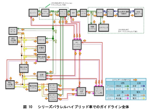 2014年頃、モデルベース開発の専門家たちが、構想設計用車両モデルのアーキテクチャ設計をする合宿をやった。扱った元ネタは、一番複雑な車両システムであったハイブリッド車。全ての技術要素を持つ複雑なもので整理しておけば、EVが来ても、他のタイプの車両が来ても対応は難しくないとの思いから。素案の、車両モデルの全体構成図(詳細ノウハウを抜いたスケルトンモデル)を持ち込んで議論をした。ハイブリッドのシミュレーションモデルを開発した経験ある専門家T氏、エンジンCAEのエキスパートS氏、、、も集まった。どんなブロック構造で構成するか、どんな性能まで表現するか、接続方法は? 、、、ガイドラインはどこまで決めるべきか、をとことん議論した。