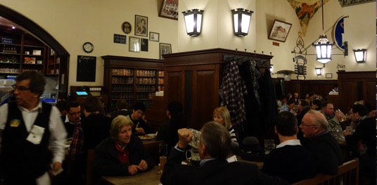 ドイツでの夜は、地元のビアホールで、満席だったが、地元の年配の人たちが相席に座れと歓迎してくださった。 1リットルほど入るサイズのビールジョッキで頼もうとしたら、たしなめられ、それは女性用ジョッキだから、これにしろと、2リットルの特大ジョッキで乾杯した。