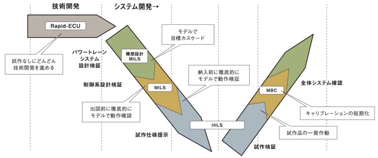 これらの相乗効果で、エンジンの一発完動の奇蹟も成し遂げた。百万行はあろうとおもわれるプログラム、その1行、その1データにミスがあっても完動はしないので、これはモデルベースがあって、初めて実現できる象徴的な成果であった。ある大ベテランの制御エンジニアが、驚き、感慨に浸っておられる姿を見た。乾杯をした。その後、毎回、当たり前のように、一発完動を繰り返し、乾杯を重ねた。