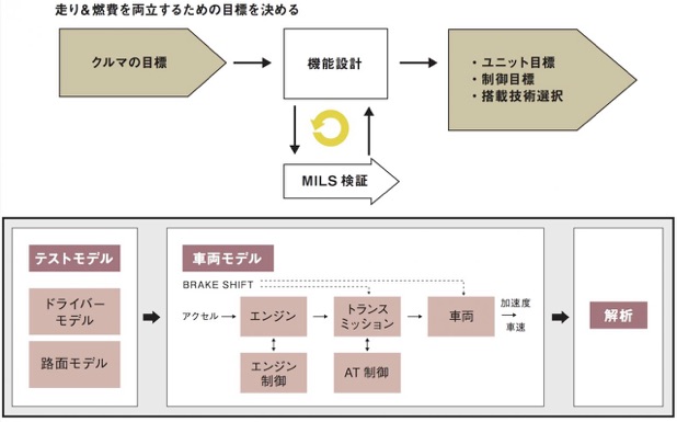 過去、モデルベース開発は、量産開発のスピードと平行であったため、実物のエンジンや車と精度の比較され、「5%ずれている! モデルの問題を調べ対策してくれ」のような、仕事も多かった。しかし、この時は、実物ができるよりもはるか前に、「 燃費30km/hの仮想車両」が走っていた。