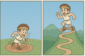 A社のやり方はつまり、上方シフトなく同じやり方で全力疾走でその場をぐるぐる回っているに過ぎなかった。そのまま更なる進歩なく、出費だけ抑え、作業を早く頑張る流儀。大変革の時代において、従来作業のままの自動化や、目の前の節約術は 無力であった。